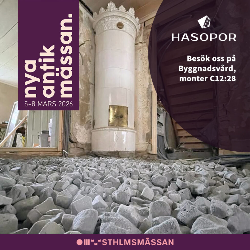 Hasopor deltar återigen på Antikmässan i Stockholm, inom avdelningen Byggnadsvård & Hantverk. Efter det stora intresset och de många givande mötena förra året väljer vi att upprepa succén och ställa ut även i år.